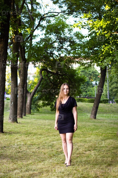 Счастливая девушка в городском парке