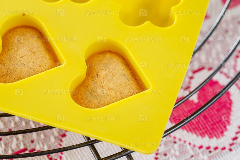 Ванильные бисквитные сердца в желтой силиконовой форме
