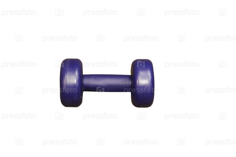 Синяя гантеля на белом фоне