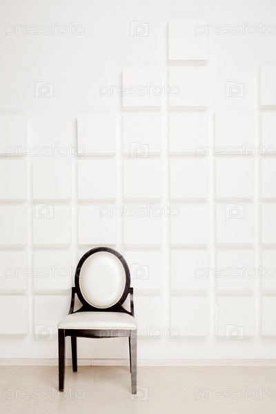 Черно-белый стул возле белой стены в студии