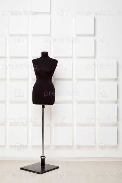 Черный манекен возле белой стены
