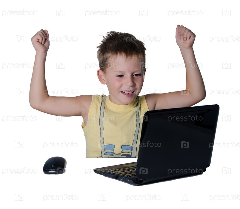 Мальчик работает на ноутбуке