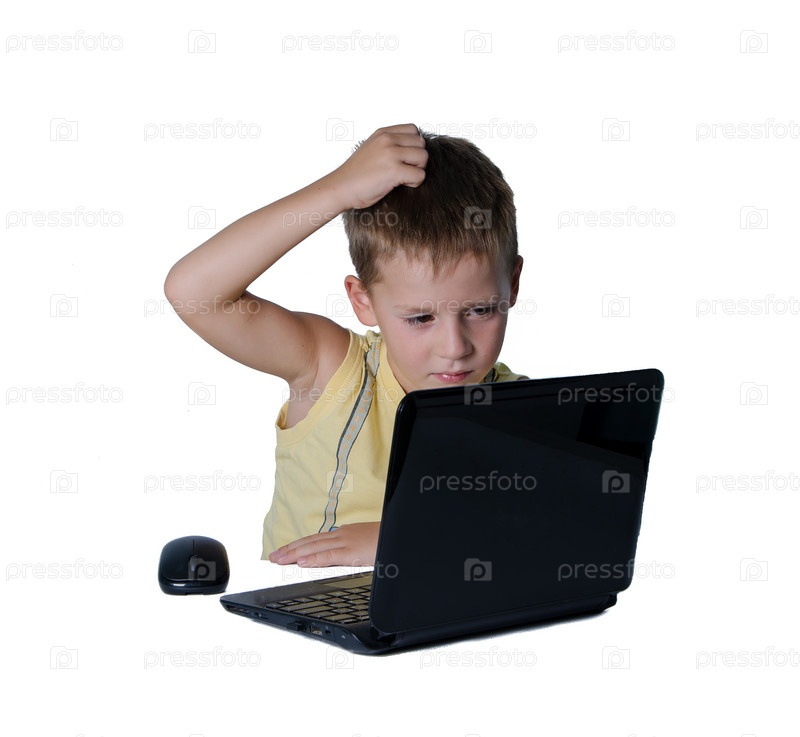 Мальчик работает на ноутбуке