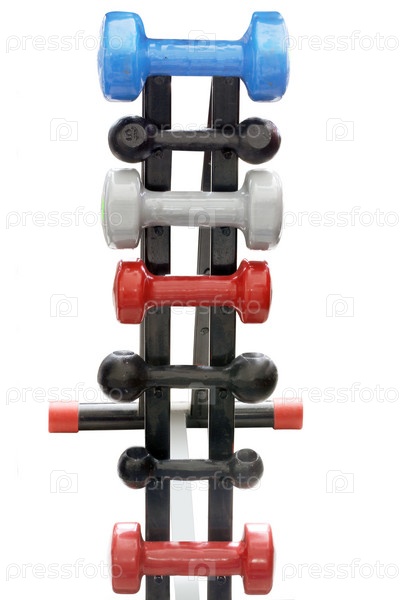 Различные виды гантель на подставке