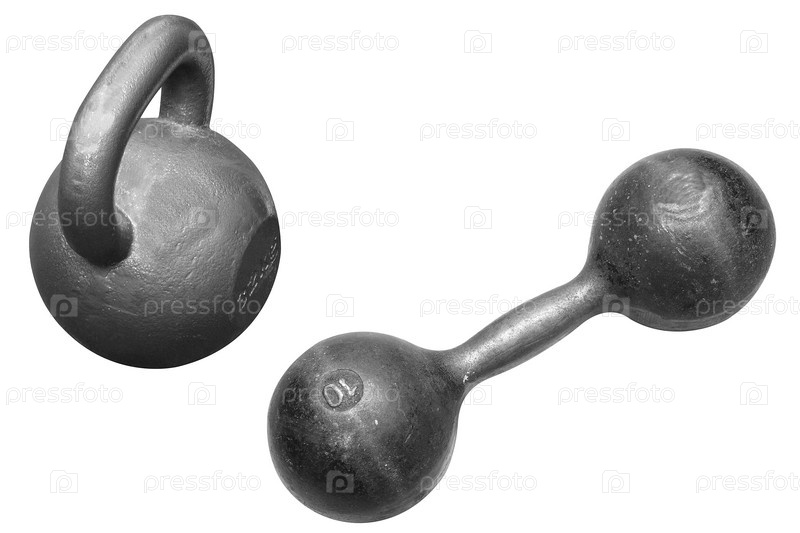 Гантели различной формы на белом фоне