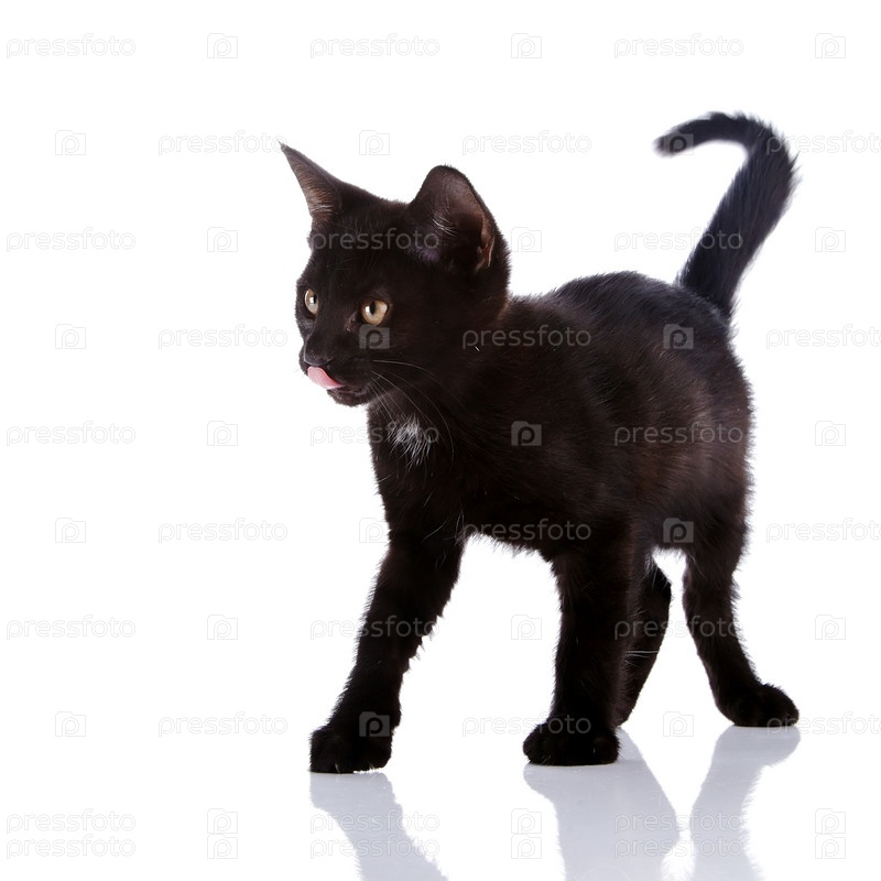 Черный котенок на белом фоне