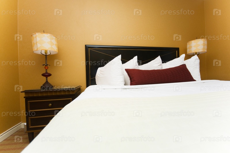 Двуспальная кровать в гостиничном номере