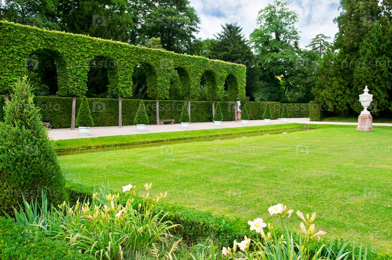 Газон и живая изгородь в летнем парке