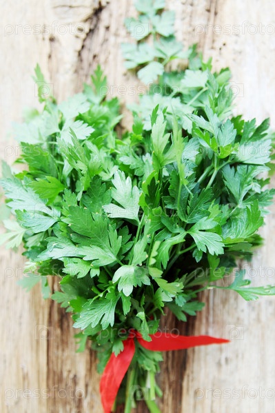 Куча свежей петрушки на деревянной доске
