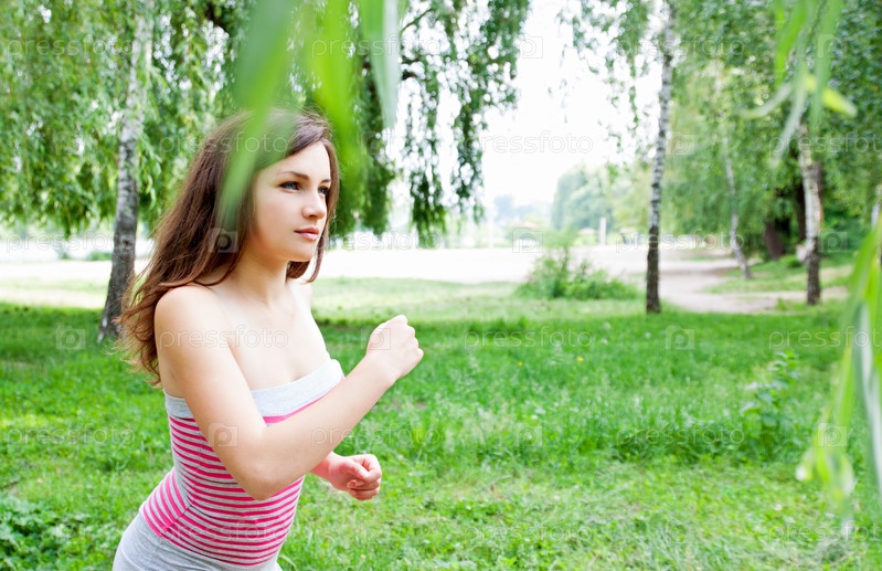 Женщина на утренней пробежке в парке