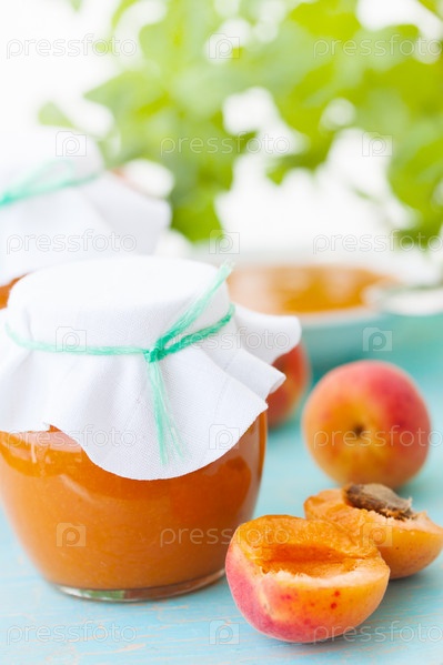 Свежие абрикосы и абрикосовое варенье, натюрморт