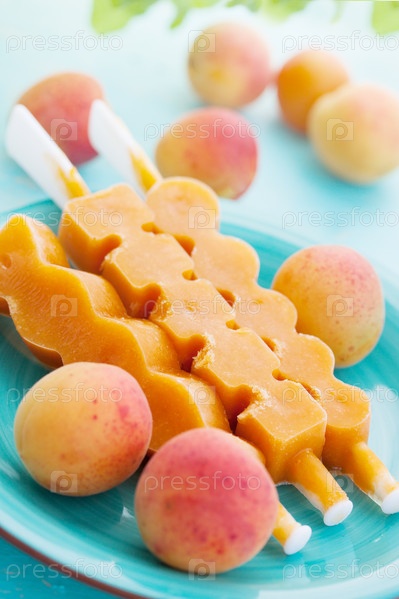 Абрикосовое мороженое и свежие абрикосы, натюрморт