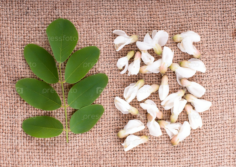 Цветы акация с листьями