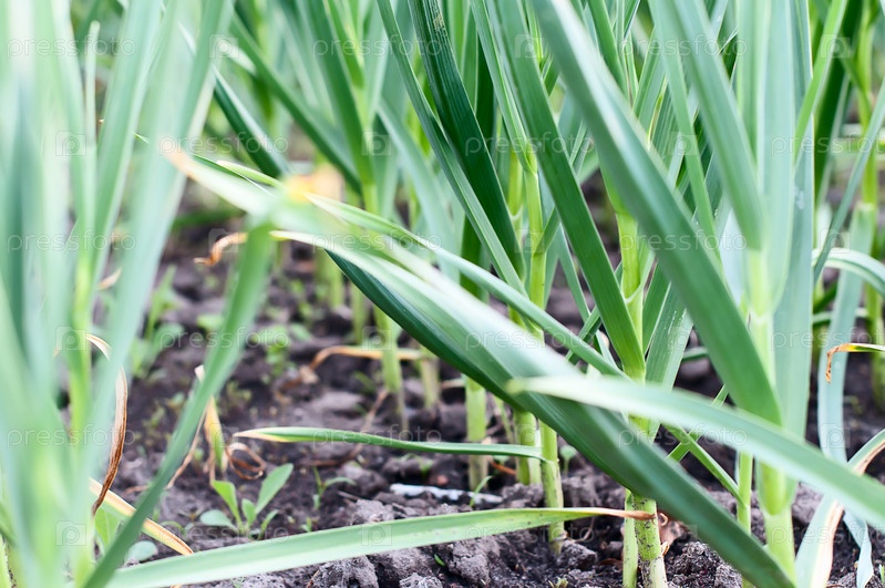 Зелень чеснока на земле