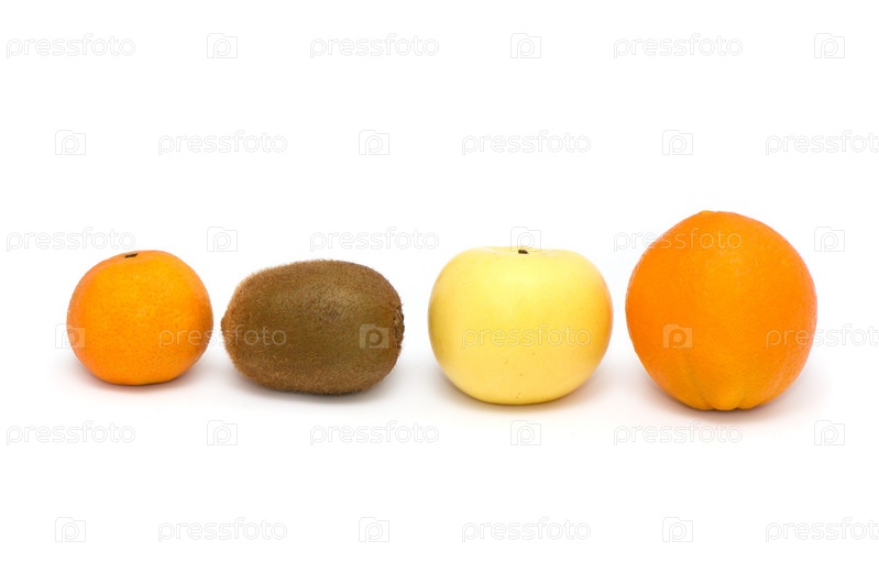 Апельсин, яблоко, мандарин и киви