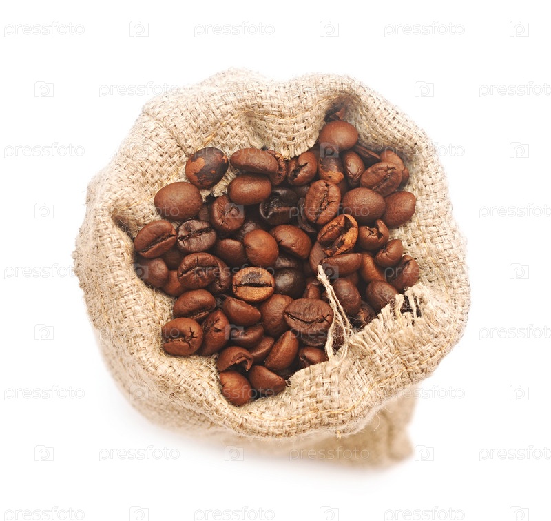 Жареные кофейные зерна в джутовом мешке