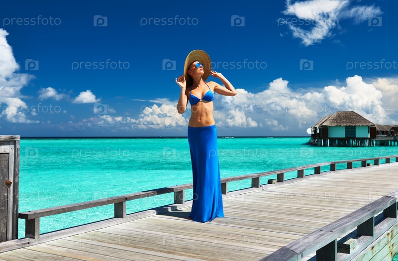 Женщина на пляже на Мальдивах