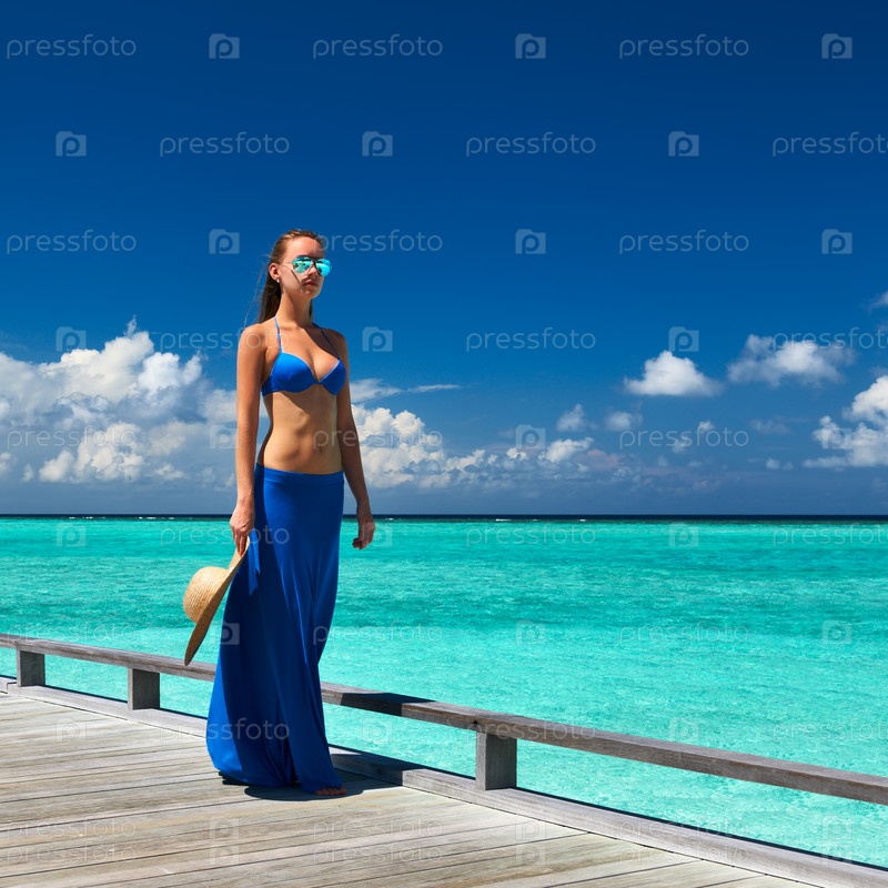 Женщина на пляже на Мальдивах