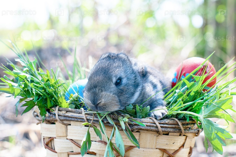 Маленький пасхальный заяц сидит в траве