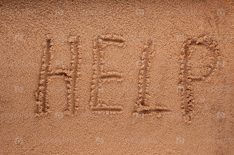 Слово "Помогите" на пляже