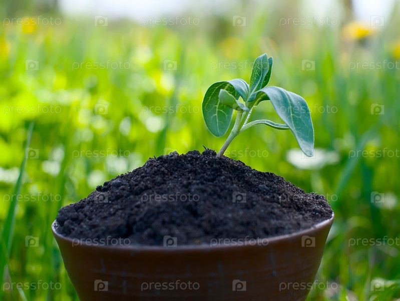 Маленький росток на фоне зеленой травы