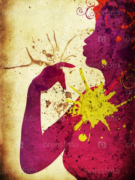 Женский силуэт с завитками