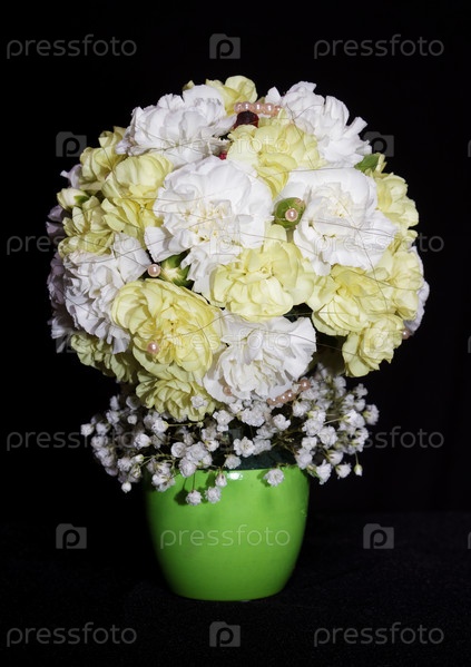 Круглый праздничный букет из гвоздик