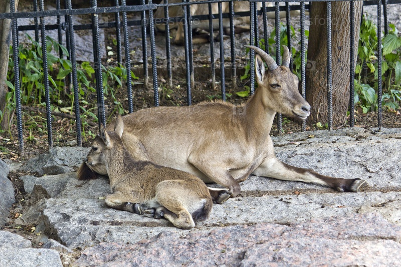 Горная коза с козленком в Московском зоопарке