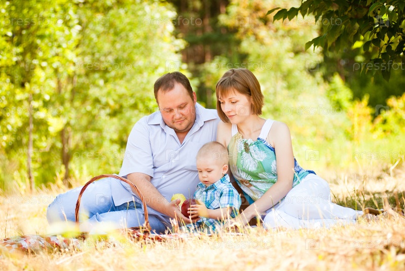 Мама, папа и сын на пикнике