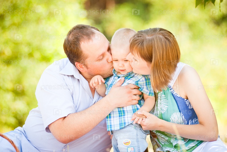 Мама, папа и сын на пикнике