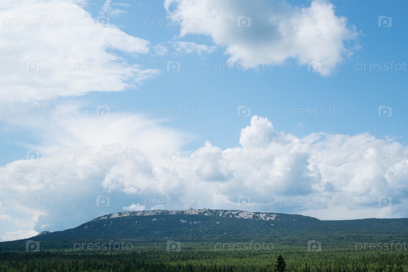 Хребет Зюраткуль в яркий солнечный день, Южный Урал, Россия