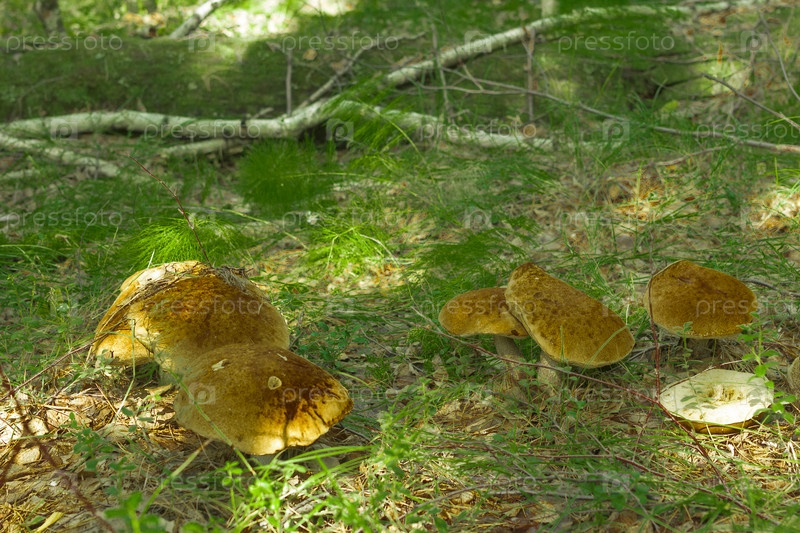 Грибы в лесу на поляне