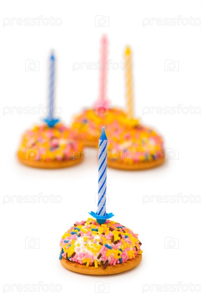 Чашечные торты и свечи изолированы на белом фоне