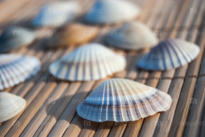 Ракушки на деревянным коврике