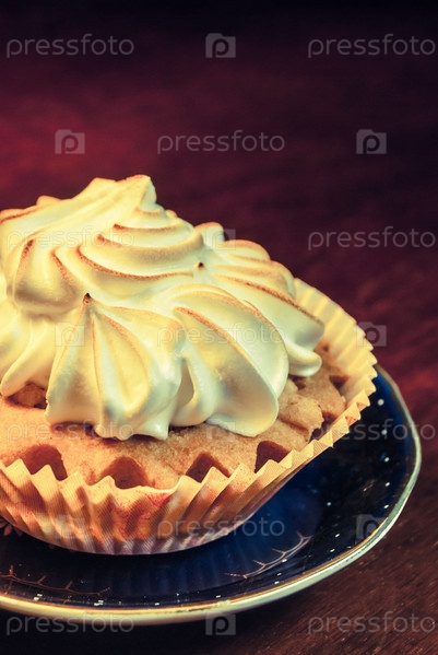 Кекс на синей тарелке