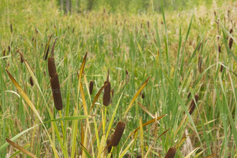 Русло заболоченной реки, поросшее травой и тростником