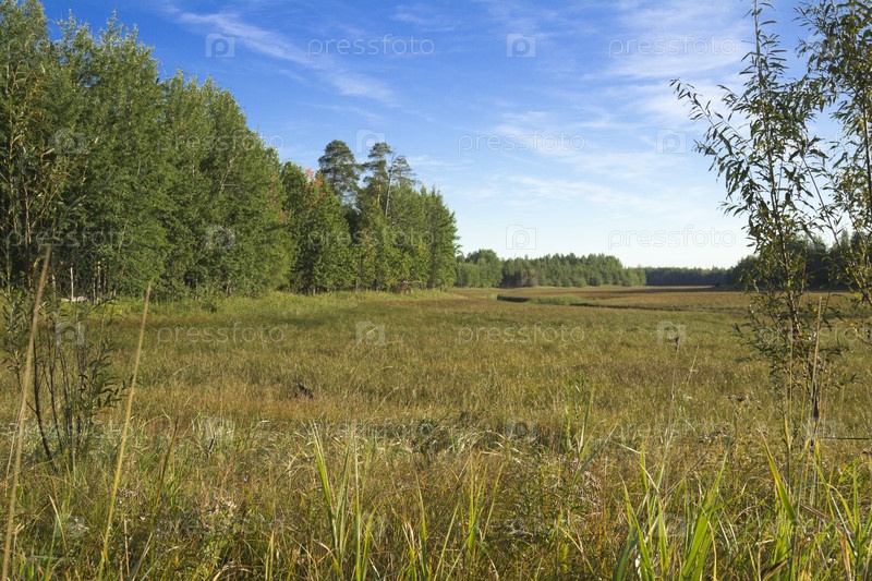 Высохшее болото, заросшее травой и камышом