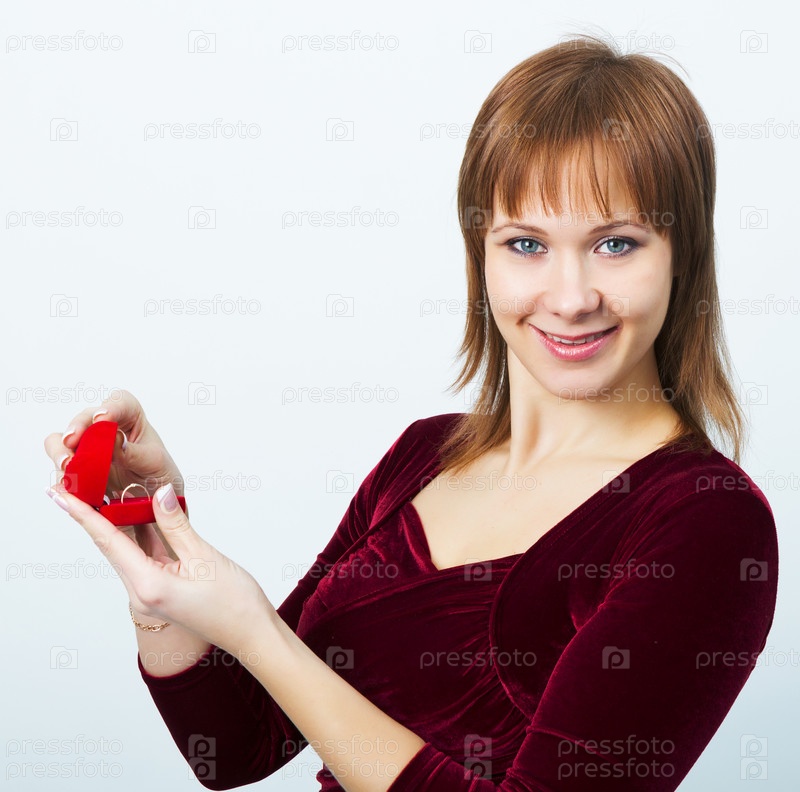 Молодая привлекательная женщина с коробкой для колец