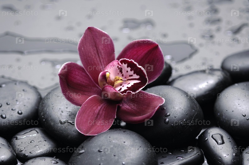 Бордовая орхидея на черном базальте