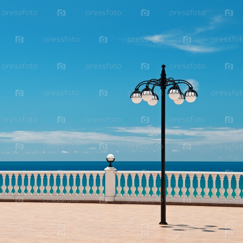 Красивая набережная с фонарями и белым парапетом