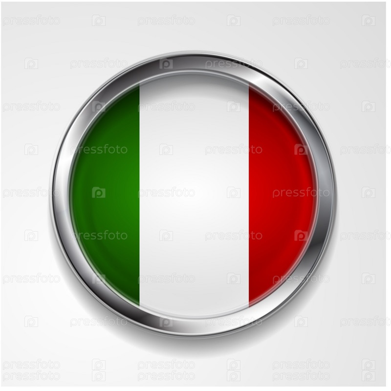 Векторная кнопка в стильной металлической раме. Итальянский флаг