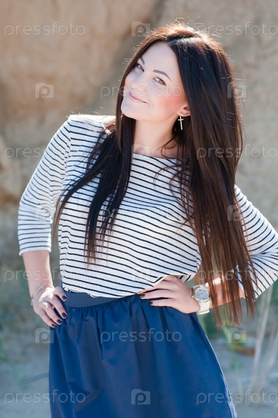 Красивая брюнетка на пляже