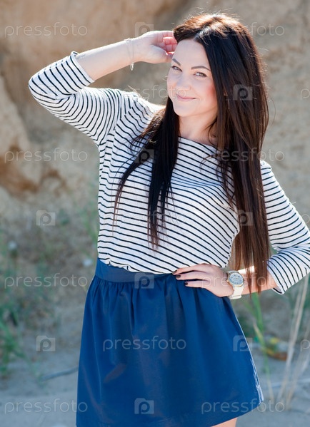 Красивая брюнетка на пляже