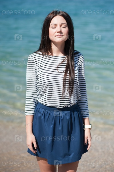 Красивая женщина-брюнетка на пляже