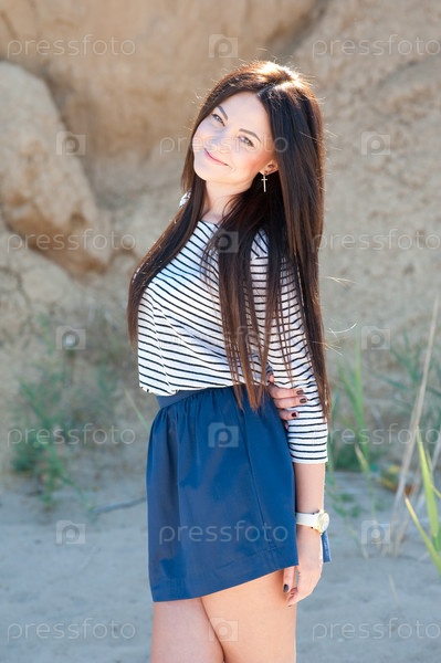 Красивая женщина-брюнетка на пляже