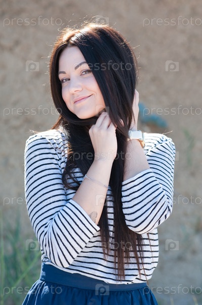 Красивая брюнетка на пляже