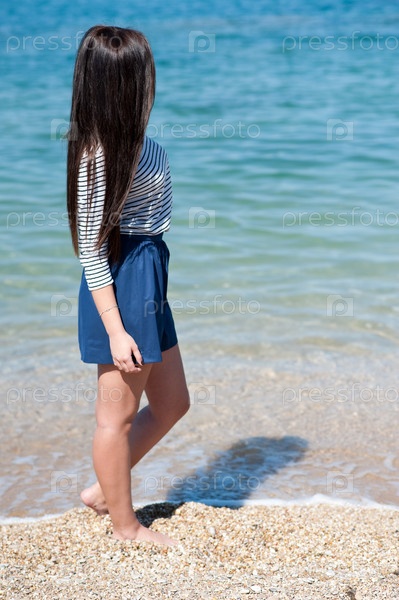 Красивая брюнетка на пляже