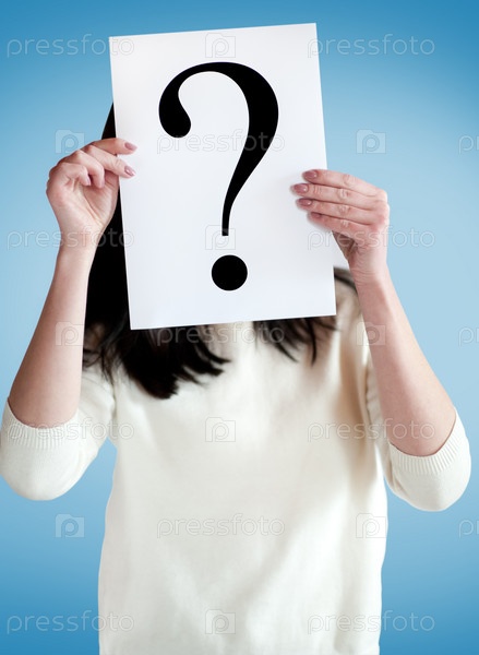 Вопросительный знак в руках деловой женщины