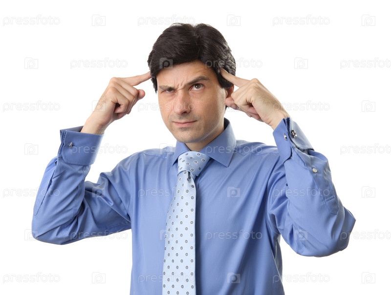 Сомневающийся красивый бизнесмен, изолированный на белом фоне