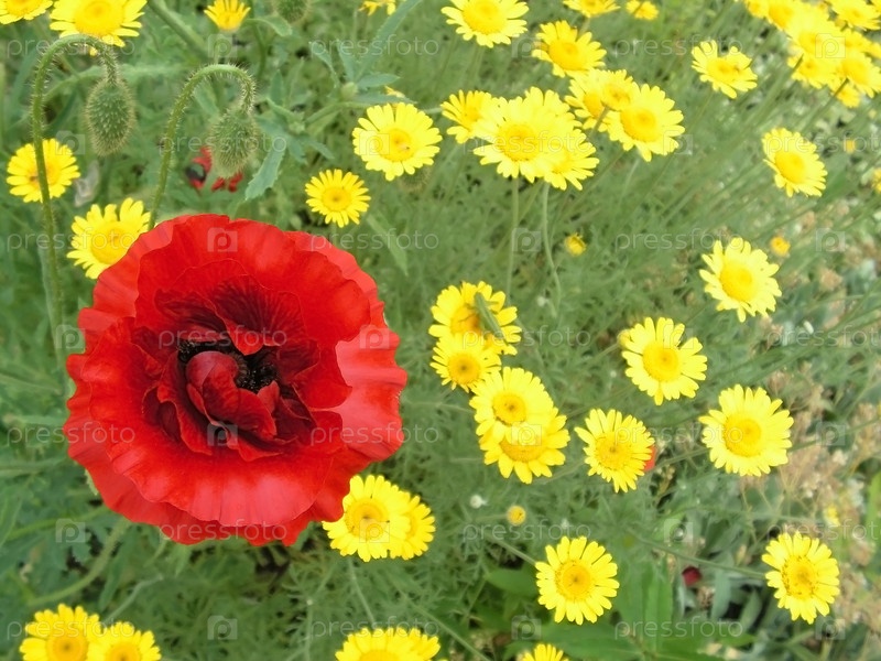 Красный и желтые цветы